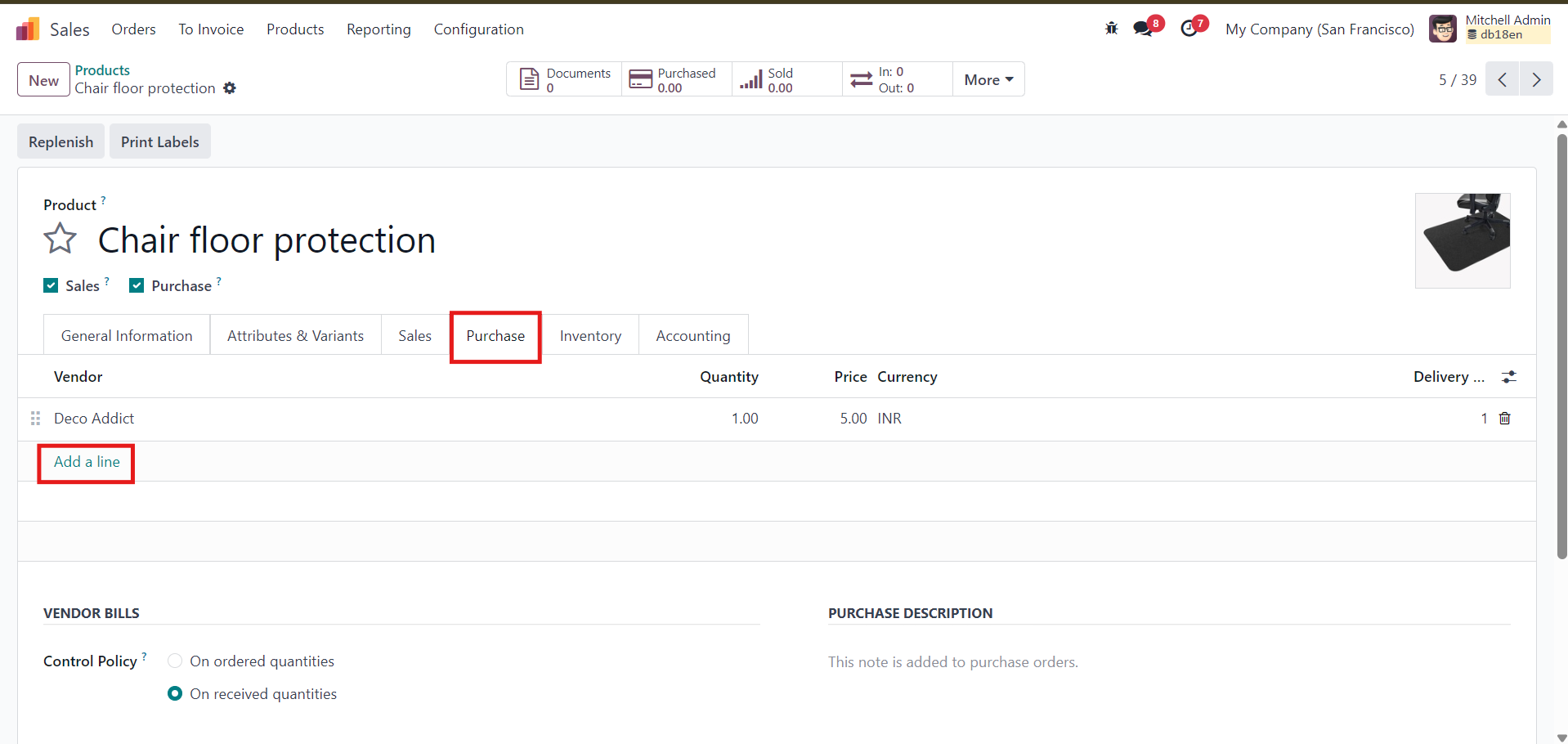 - Open the product and go to the Purchase tab.