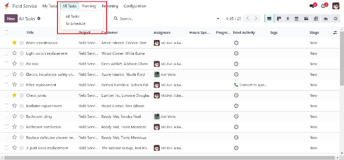 All of the tasks that are prevailing and to be scheduled can be viewed and scheduled.
